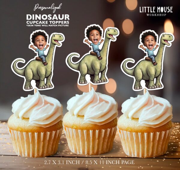 Custom Face Riding Dinosaur Cupcake Toppers for Toddler Boys