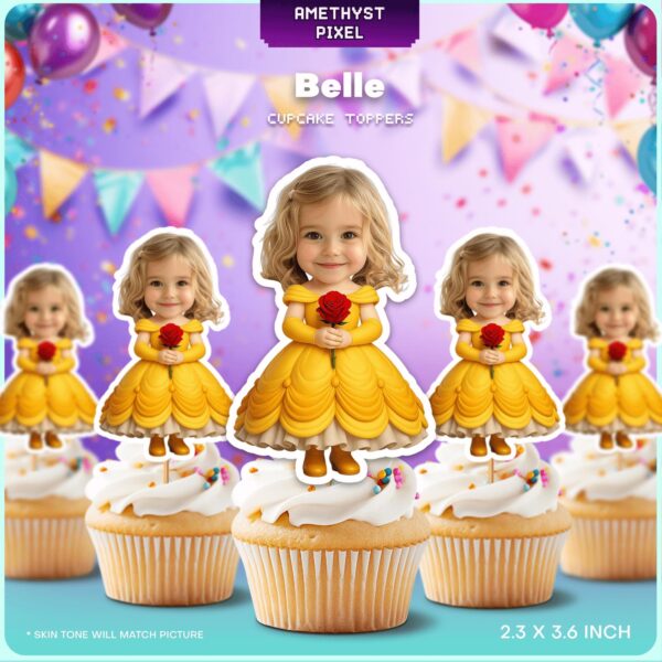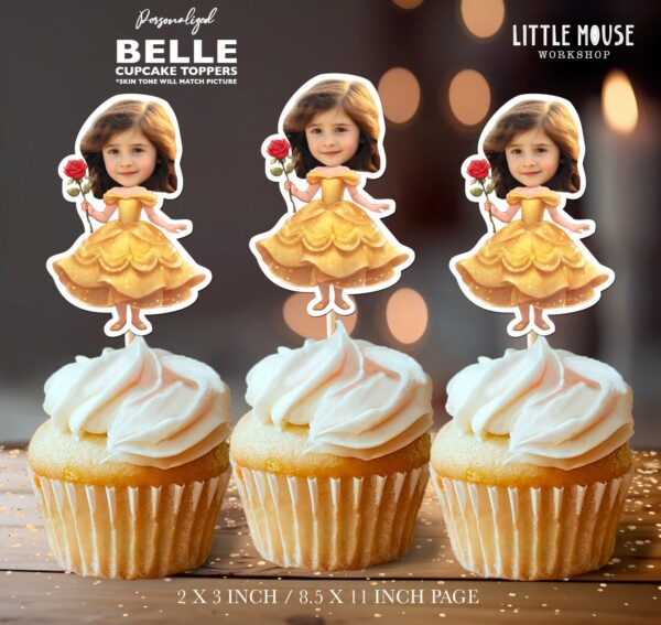 Custom Face Belle Princess Cupcake Toppers for Beauty and the Beast Birthday