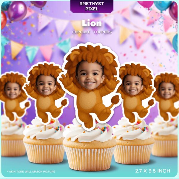 Custom Face Playful Lion Cupcake Toppers for Safari Themed Birthday Adventures