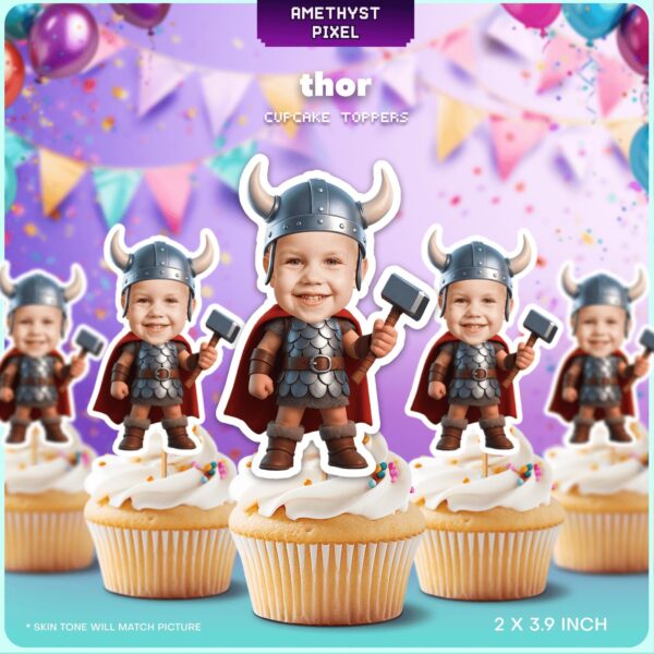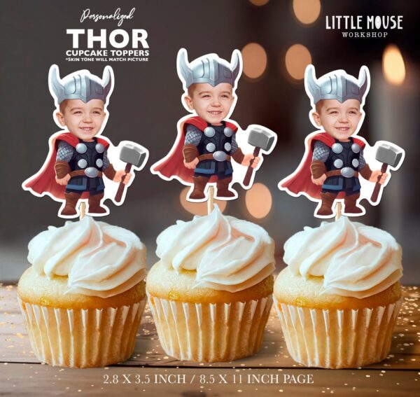 Personalized Thor Face Cupcake Toppers – Custom Superhero Birthday Decor