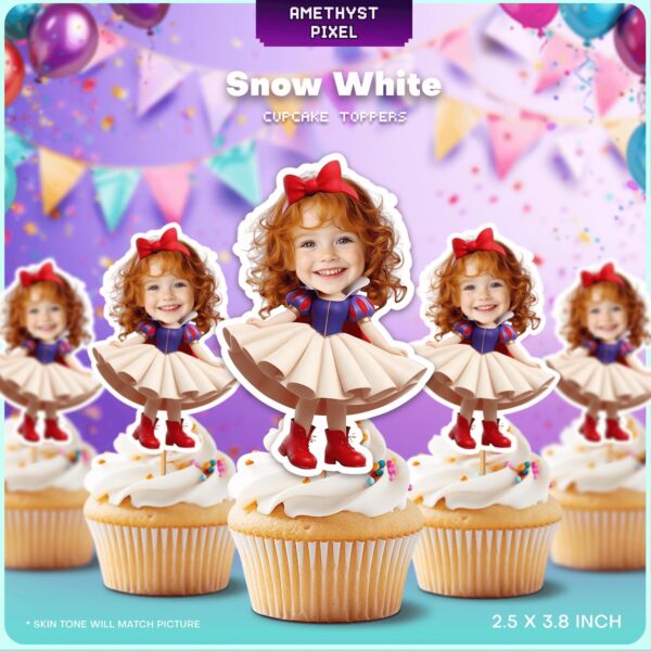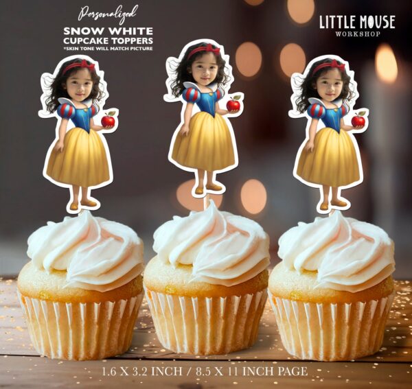 Custom Photo Snow White Princess Cupcake Toppers for Enchanted Toddler Birthday Celebrations