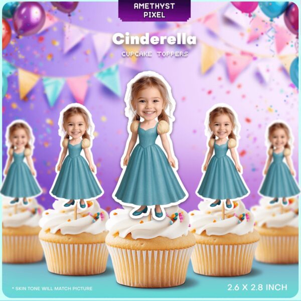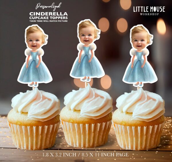 Personalized Cinderella Princess Cupcake Toppers with Custom Baby Face Photo