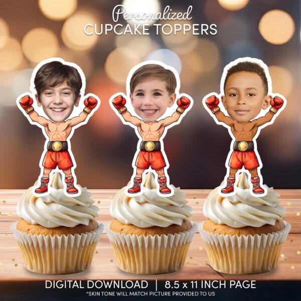 Custom Boxing Champion Face Cupcake Toppers - Printable Sports Birthday Party Decor