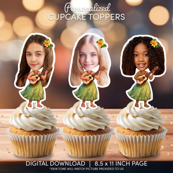 Personalized Hula Girl Cupcake Toppers – Tropical Luau & Hawaiian Birthday Party Printable