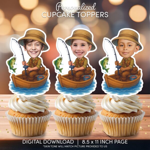 Custom Fisherman Photo Cupcake Toppers - Printable Fishing Birthday Decor