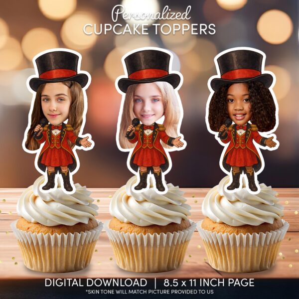 Custom Ringmaster Face Cupcake Toppers for Circus Themed Birthday Parties