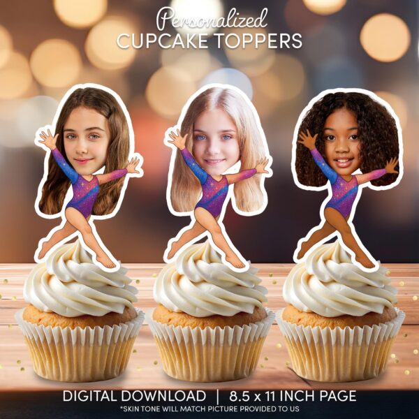 Personalized Gymnast Cupcake Toppers - Galaxy Leotard Photo Face Printable