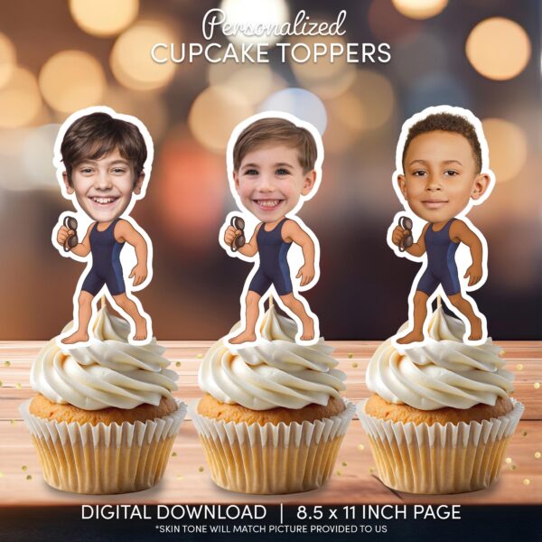 Custom Face Wrestling Cupcake Toppers - Personalized Singlet Photo Party Decor