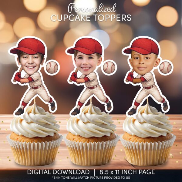 Custom Baseball Batter Photo Cupcake Toppers - Personalized Sports Party Decor