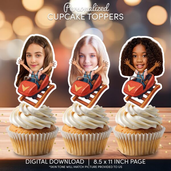 Custom Face Roller Coaster Cupcake Toppers - Printable Amusement Park Birthday Decor