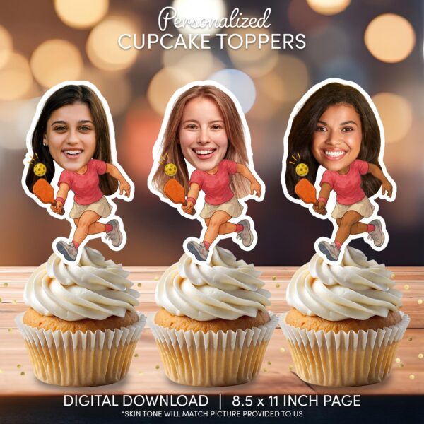 Personalized Pickleball Face Cupcake Toppers – Custom Sports Party Decorations