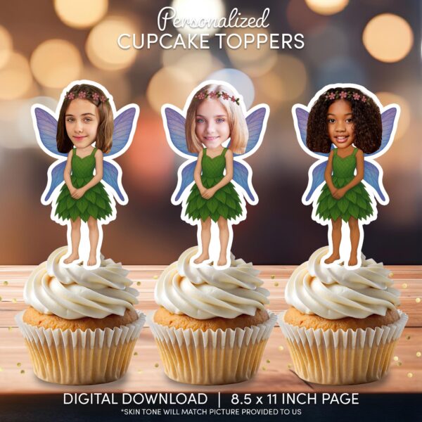Custom Face Forest Fairy Cupcake Toppers – Printable Enchanted Garden Birthday Decor
