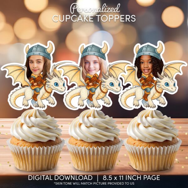 Custom Face Dragon Rider Cupcake Toppers – Personalized Viking Fantasy Party Decoration for Kids
