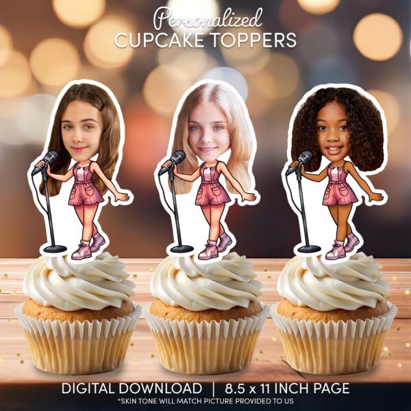 Personalized Pop Star Cupcake Toppers - Custom Face Singer Printable Party Decor