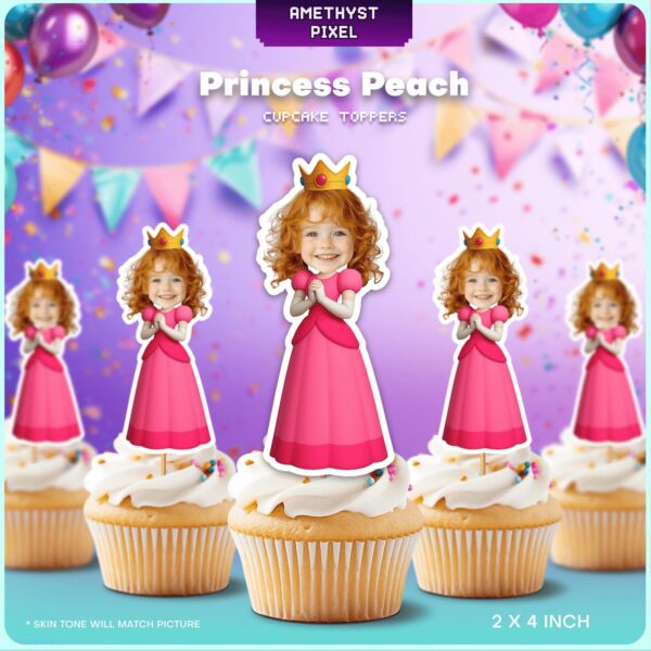 Custom Face Princess Peach Cupcake Toppers for Personalized Birthday Parties