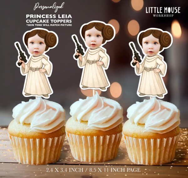 Custom Face Princess Leia Cupcake Toppers for Galactic Rebel Birthday Parties