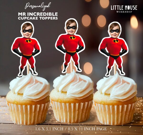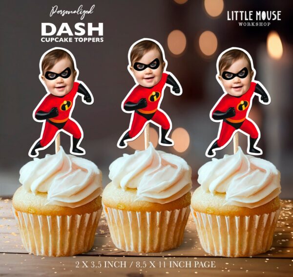Custom Face Dash Superhero Cupcake Toppers – The Incredibles Themed Birthday Décor