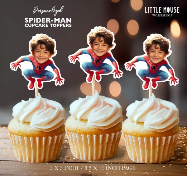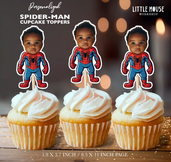 Custom Face Spider-Man Cupcake Toppers for Superhero Baby Birthday Decor