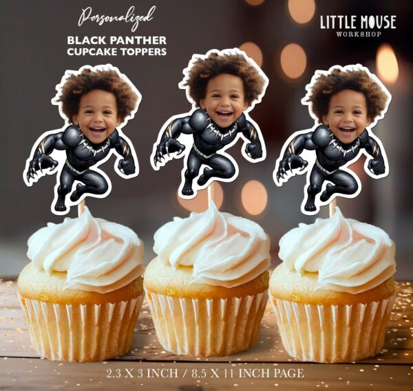 Custom Face Black Panther Cupcake Toppers for Action-Packed Superhero Birthday Parties