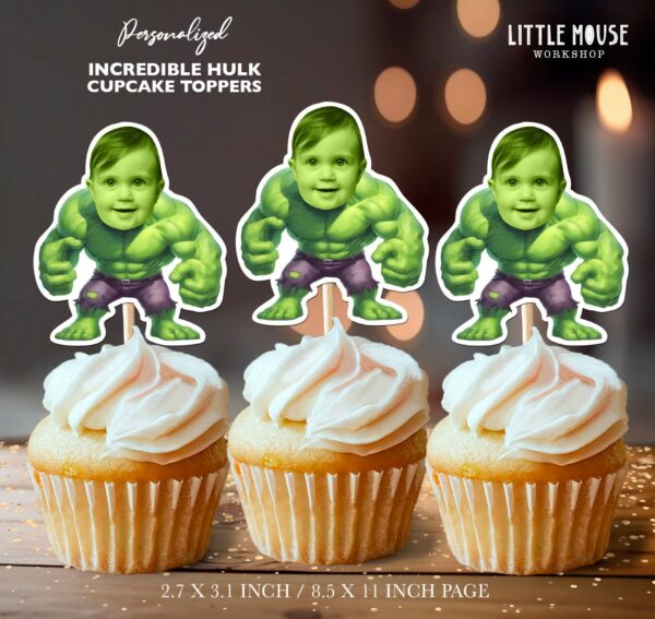 Personalized Incredible Hulk Cupcake Toppers Featuring Your Child's Photo