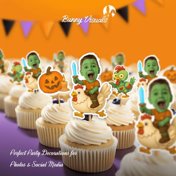 Custom Face Zombie Chicken Jockey Theme Cupcake Toppers
