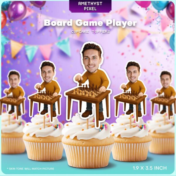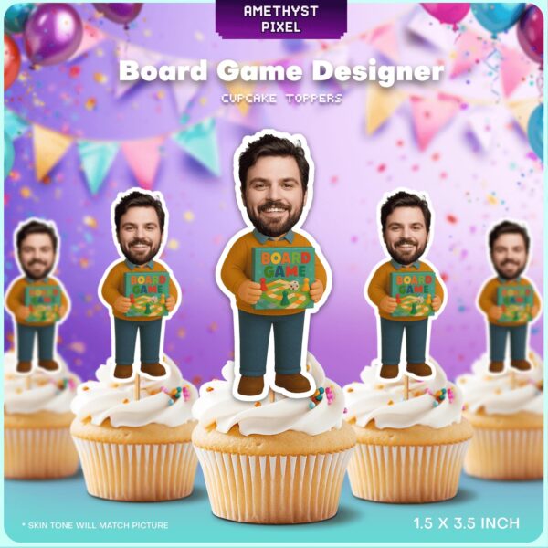 Personalized Board Game Designer Cupcake Toppers Featuring Custom Face