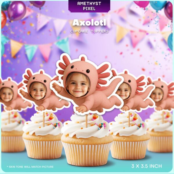 Personalized Pink Axolotl Cupcake Toppers With Custom Face Photo