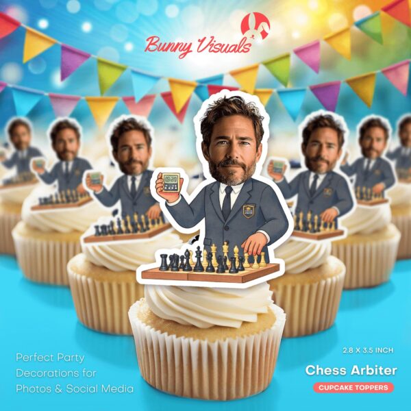 Authorized Chess Arbiter Custom Face Cupcake Toppers for Strategy Lovers