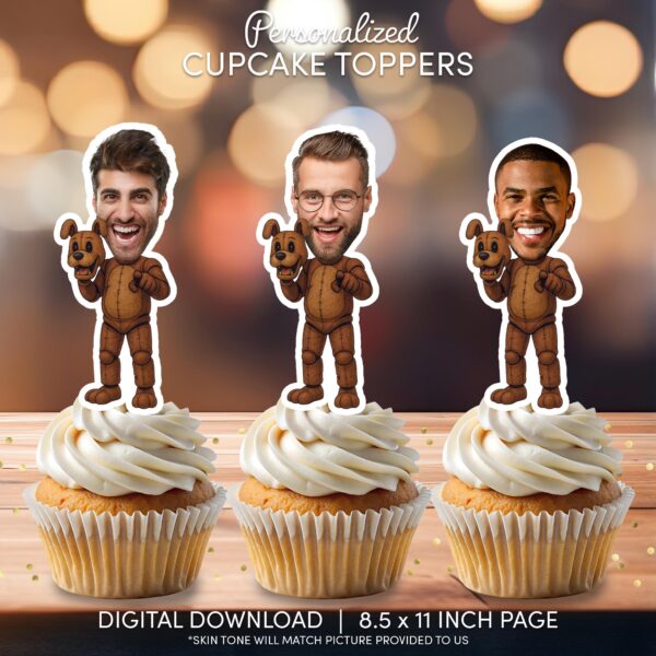 Personalized Animatronic Bear Cupcake Toppers – Gamer Horror Theme Face Decor