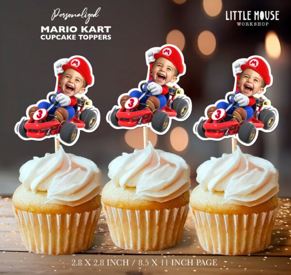 Custom Face Mario Kart Cupcake Toppers – Personalized Racing Birthday Decor