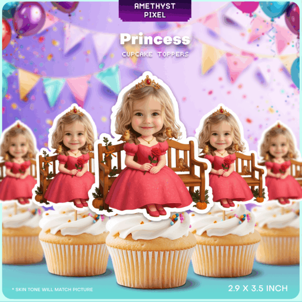 Custom Face Princess Cupcake Toppers – Personalized Pink Royal Birthday Party Printable
