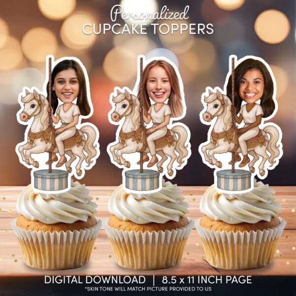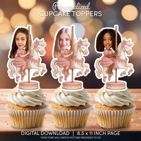 Custom Face Carousel Horse Cupcake Toppers - Printable Party Decor