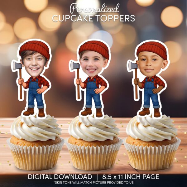 Custom Lumberjack Face Cupcake Toppers - Printable Buffalo Plaid Woodland Party Layout
