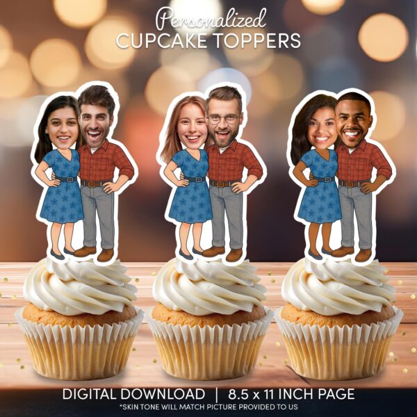 Custom Couple Photo Cupcake Toppers Personalised Engagement & Anniversary Cake Decor