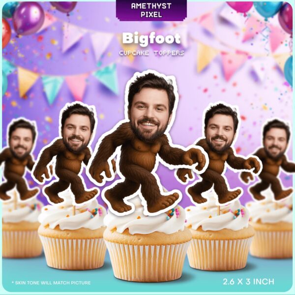 Custom Face Bigfoot Sasquatch Cupcake Toppers Personalized Photo Party Decor