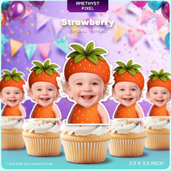 Custom Face Strawberry Cupcake Toppers for Berry Sweet First Birthdays
