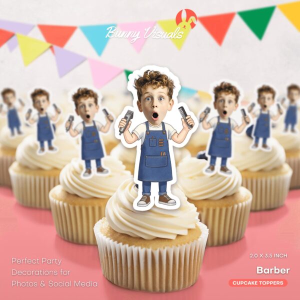 Custom Photo Barber Theme Cupcake Toppers – Printable Hair Stylist Decorations