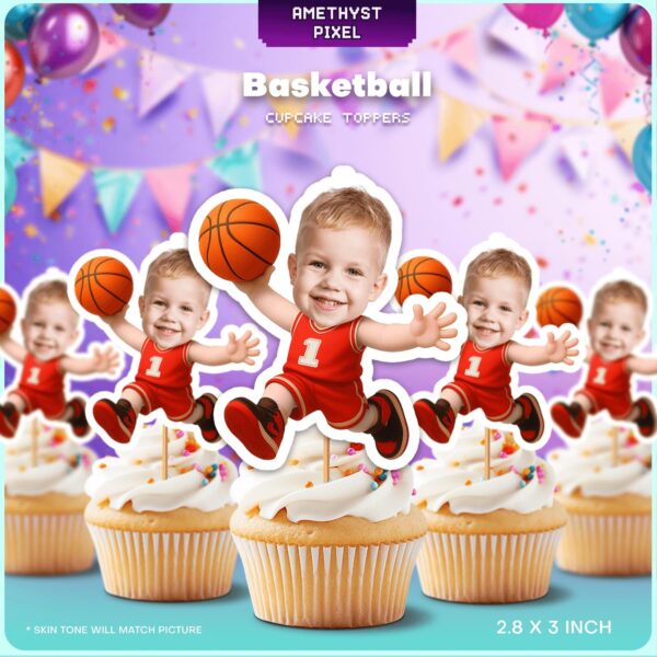 Custom Face Basketball MVP Cupcake Toppers for First Birthday Parties