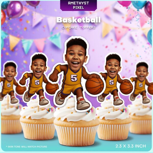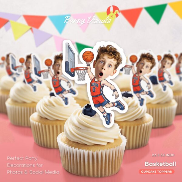 Custom Face Basketball Player Cupcake Toppers – Personalized MVP Sports Theme Party Decoration