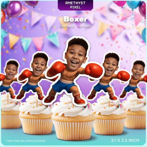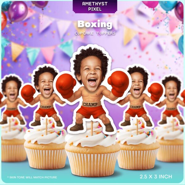 Custom Face Boxing Cupcake Toppers – Little Champ Birthday Party Decor