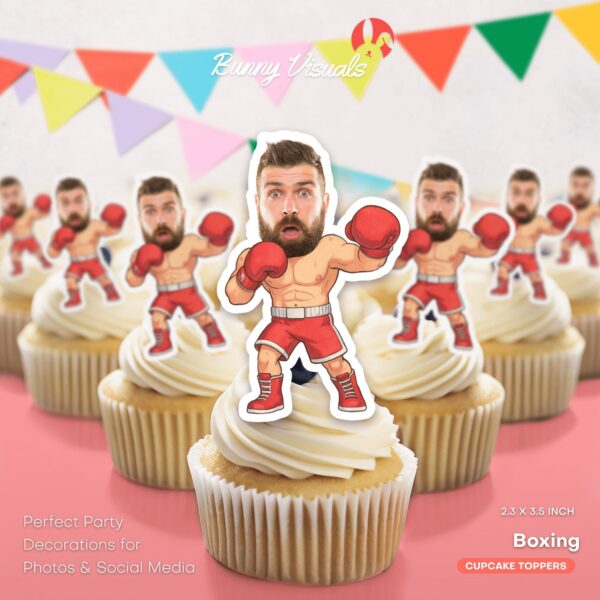 Custom Face Boxer Theme Cupcake Toppers for Champions