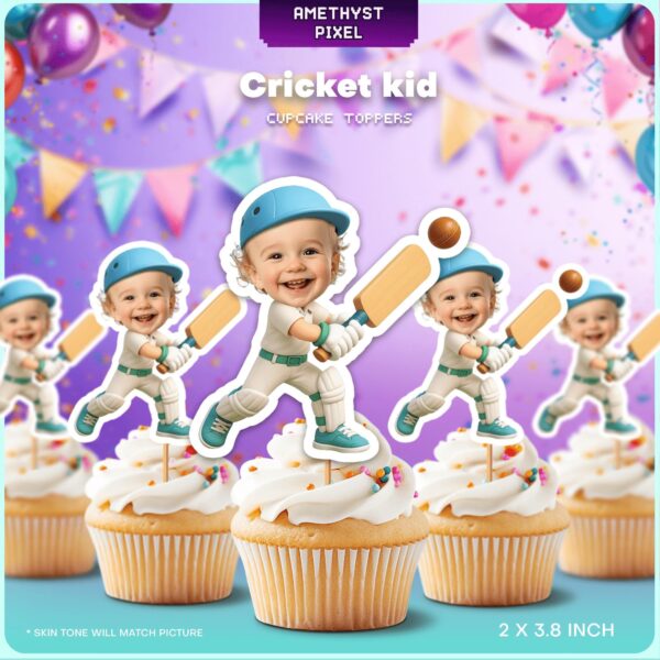 Custom Face Cricket Batsman Cupcake Toppers for Boys Sports Birthday Parties