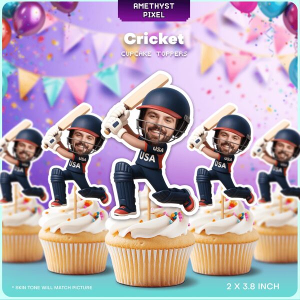 Custom Face USA Cricket Batsman Cupcake Toppers for Sports Fans