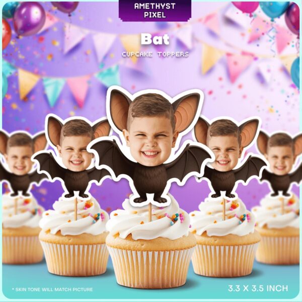 Custom Face Bat Cupcake Toppers – Cute Halloween Birthday Party Supplies