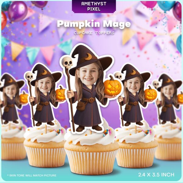Personalized Pumpkin Mage Custom Face Cupcake Toppers for Kids Halloween Events