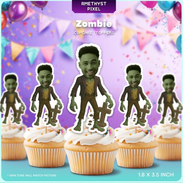 Custom Photo Zombie Cupcake Toppers - Personalized Undead Halloween & Birthday Party Decorations
