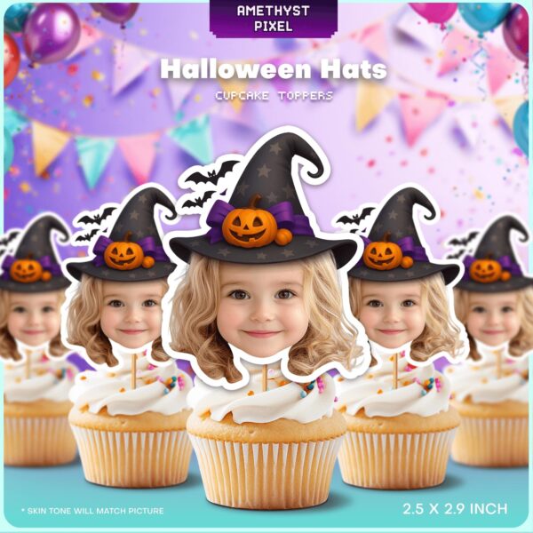 Personalized Pumpkin Witch Custom Face Cupcake Toppers for Halloween Parties