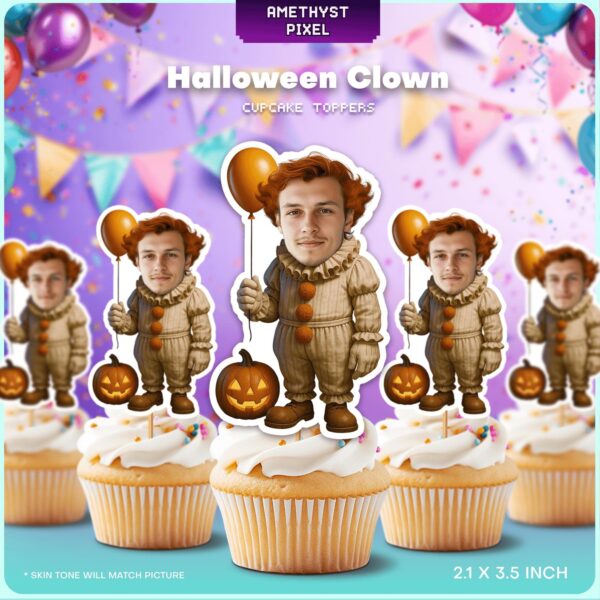 Custom Face Halloween Clown Cupcake Toppers – Horror Movie Themed Party Picks