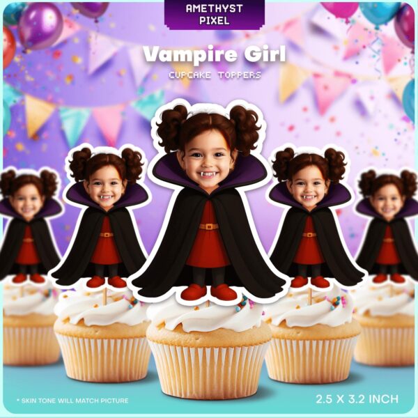 Custom Face Vampire Girl Cupcake Toppers – Personalized Little Dracula Halloween Decor