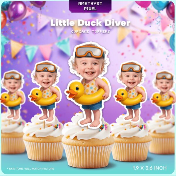Little Duck Diver Custom Face Cupcake Toppers with Swim Goggles & Floatie